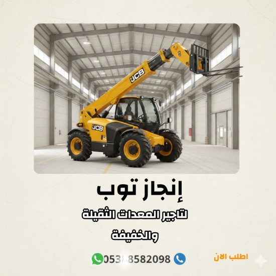 إنجاز توب لتأجير المعدات الثقيلة والخفيفة📞 0538582098رافعات شوكية – سيزرات – مان لفت للإيجار في جميع مدن السعودية🔸 رافعات شوكية (Forklift)1 طن – 1.5 طن – 2 طن – 2.5 طن – 3 طن – 4 طن – 5 طن – 7 طن – 10 طن ديزل | كهرباء | غاز LPG مع سائق أو بدون سائق للدمام – الرياض – جدة – الجبيل – القطيف – القصيم – تبوك🔸 سيزر لفت (Scissor Lift)ارتفاعات: 6م – 8م – 10م – 12م – 14م – 16م كهرباء وديزل للمستودعات والمصانع والمشاريع🔸 مان لفت (Man Lift)12م – 16م – 20م – 26م – 32م مفصلي وتلسكوبي للتركيبات والصيانة والمواقع الإنشائية🔸 مميزاتنامعدات حديثة | فحص دوري | مطابقة للسلامة تأجير يومي – شهري – سنوي خدمة سريعة وتغطية جميع مناطق المملكه